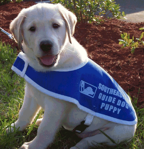 Heide also addresses the sort of behavior or other traits that might identify a puppy as ineligible to continue down the path toward work as a guide dog, and the sorts of alternative programs those dogs might enter, including Paws For Patriots, which among other facets, pairs trained dogs with veterans who suffer from Post Traumatic Stress Disorder (PTSD). She also outlines the costs associated with training these dogs and their humans, which can be upwards of $60,000, and the myriad ways that volunteers are central to the Southeastern operation. (www.GuideDogs.org)