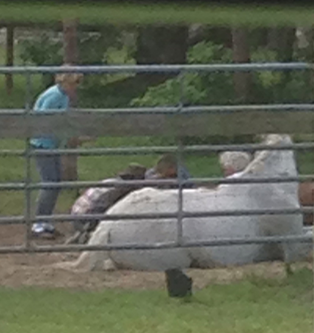 retired and become the companion at our house of Sir Jearly, the retired dressage champion we adopted a few years ago. On Saturday morning, Narobi apparently re-injured his leg and it was determined that there was no alternative but to euthanize him. Once the veterinarian arrived, Sir Jearly laid down near Narobi, joining the love circle that was saying farewell to this beautiful horse. R.I.P., Narobi.