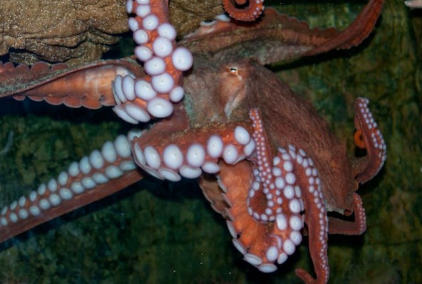 (Athena is pictured here.) By contrast, Montgomery observes that some human visitors did not get this sort of affectionate response, but instead, a blast of cold water…in some cases, every single time that person visited! “The Soul of an Octopus” details Montgomery’s efforts to get certified in scuba diving, enabling her to see the animals in nature in a variety of locales—in response to my question, she shares her view, after all her experiences in nature and at the Aquarium, of keeping octopuses in captivity. (http://symontgomery.com)